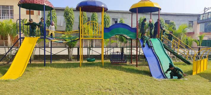 KG students enjoying sensory pathway and swings