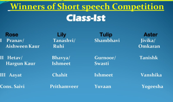 SHORT SPEECH COMPETITION CLASS 1