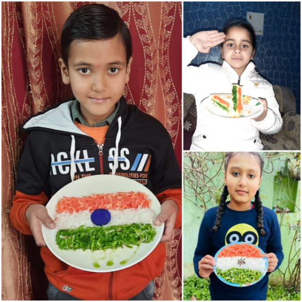Students of classes 3 and 4 celebrating Republic Day craft, tricolour, food fun...