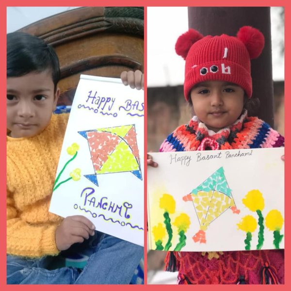 Basant Panchmi welcomes beautiful Spring season.It marks the birthday of Goddess Saraswati. Here are some glimpses of online Basant Panchami Celebration of Prenursery, Nursery and KG students. Yellow colour theme Art activities#Flower impression#earbudspainting#tearing and pasting # happy kids.